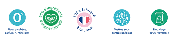 Produits de soins du corps, du visage et de la bouche 100% français et composés à 98.% d’ingrédients naturels ou bio à base d’eau de source, huiles végétales, huiles essentielles …