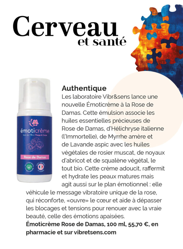 Le magazine Cerveau et Santé met en lumière notre dernière création : l’émoticrème Rose de Damas.