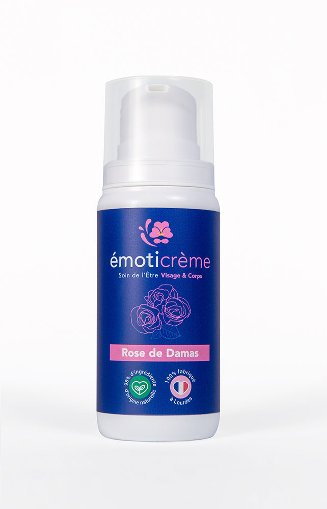 Quintessence des émoticrèmes Visage & Corps de par la rareté et la générosité des ingrédients qui la composent, cette émoticrème révèle toute la magnificence de la Rose de Damas, fleur mythique, universelle, délicate, puissante, au parfum intemporel et aux vertus exceptionnelles. Elle s’enrichit d’ingrédients remarquables tels que le rosier muscat, la myrrhe, l’hélichryse italienne, la lavande aspic, l’huile de noyaux d’abricots, l’huile d’amande douce et l’huile de coco qui la subliment et en font un soin d’excellence, complet et profond.